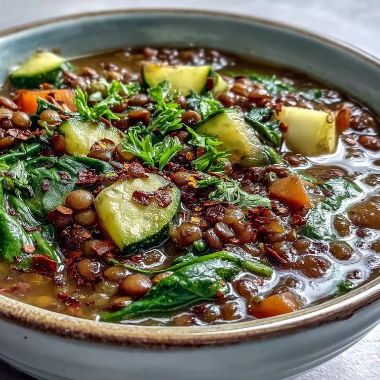 If you prefer a creamier soup, use an immersion blender to partially blend it before adding the greens—this breaks down some of the lentils and vegetables while keeping enough texture to remain interesting. I learned this trick by accident after over-blending a batch years ago, and now I'm much more intentional about it. The result is somewhere between chunky and smooth, which somehow feels more elegant than either extreme.