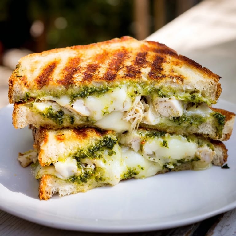 Pin it Last Tuesday, my kitchen smelled like garlic and warm bread by 7 PM. I had leftover rotisserie chicken from dinner the night before and a jar of pesto that needed using, so I started layering ingredients without much thinking. The first bite made me pause—something about the salty mozzarella cutting through that herby pesto sauce felt like a discovery. Now it is the sandwich I make when I want dinner to feel special without actually trying hard.