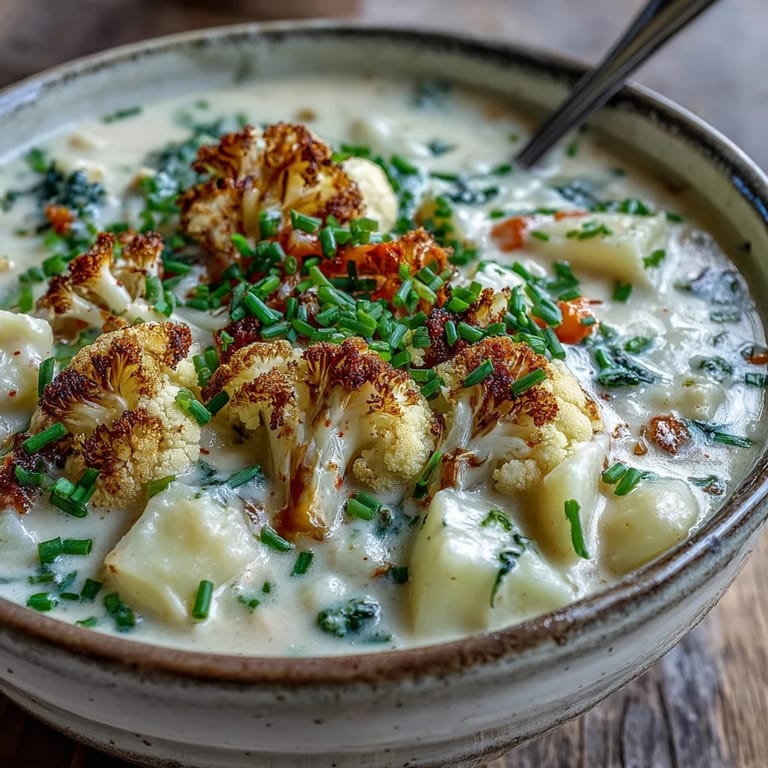 Pin it There's something about the smell of caramelizing onions that pulls me back to a rainy October afternoon when my neighbor stopped by with an armful of cauliflower from her garden. I had no grand plan, just a pot, some pantry basics, and the sudden realization that comfort food doesn't need meat to feel substantial. That first spoonful of creamy, golden chowder became a quiet revelation about how vegetables could carry an entire meal on their own.